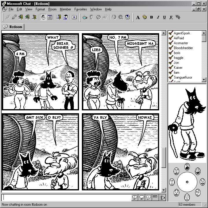 筆者は結構、高齢です。50代です。昔インターネット黎明期はMicrosoftが出していた、コミックChatというものがありました。自分でキャラを作り、感情表現をしながらチャットしたものです。いわゆるオープンチャットで誰とでもChatが出来ます。自分でルームを作り、「誰でもどうぞ」とやると、誰でもが入ってきてChatを行います。男性なのに女性のフリをするインターネット上のオカマ、「ネカマ」という言葉が出来た時代でもありました。キャラクターをえらんで、右下で表情をえらぶのですが、「あははは」とChatに入力するとキャラクターが自動で大笑いの絵になるなど、いろいろなギミックが楽しかったことを覚えています。