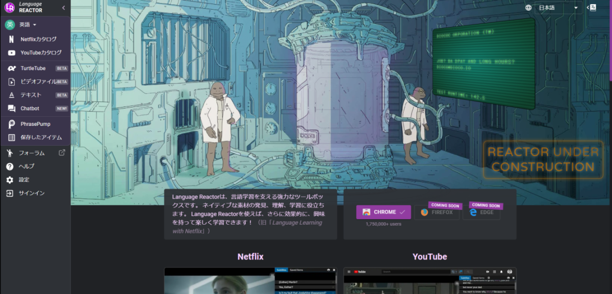 タイトルの通り、英語のコンテンツに字幕と日本語訳を同時に表示してくれるものです。対象動画はYou TubeとNetflixです。リージョン(国ごとに配信コンテンツを制御する区切り)によって再生出来ないものもありますが、とても有用です。